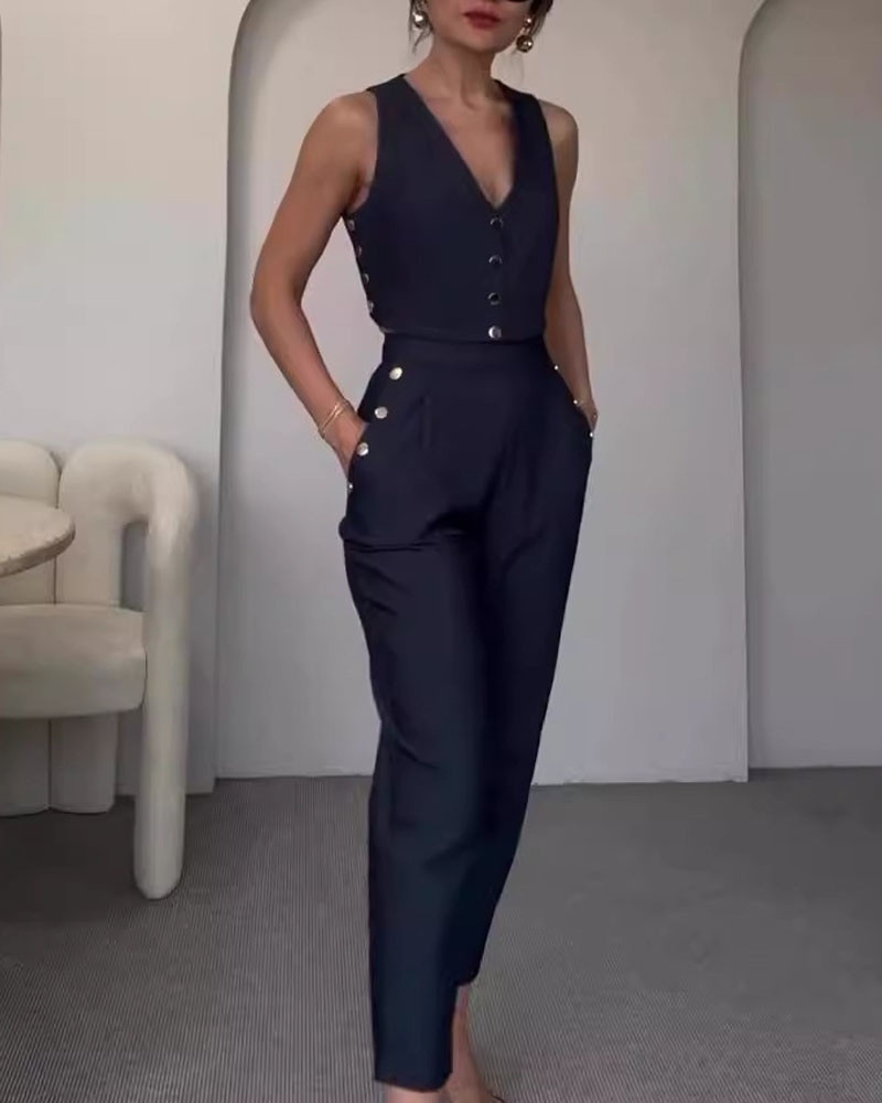 Details: Cropped Top mit Knopfdetails und High-Waist-Hose. Passform: Bietet eine eng anliegende